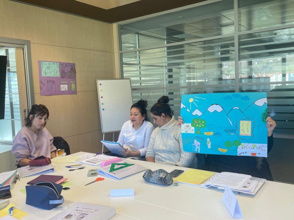En el grupo de trabajo, que se llamó Red de Cuidados, se identificó la necesidad de formar profesionales en el ámbito de los cuidados. Así por primera vez en la comarca, se está ofreciendo formación homologada, gracias a la colaboración entre las instituciones públicas y privadas que trabajan en el ámbito de cuidados, junto con Nafar Lansarea y Áctima, empresa que ofrece formación.
