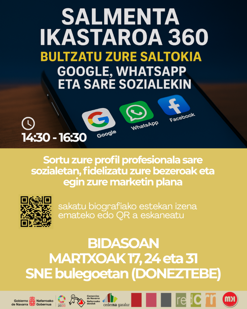 Prestakuntza honek ikuspegi integral eta praktikoa eskaintzen du, tokiko merkataritzak mapa digitalean posizionatzen eta bere komunikazio-kanalak salmenta zuzeneko tresna bihurtzen ikas dezan, Googleko presentzia optimizatuz, Sare Sozialen eta WhatsApp Business-en erabilear profesionalizatuz eta marketin-plan erraz baina eraginkor bat diseinatuz.