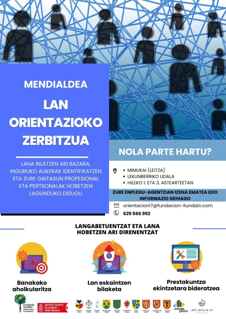 Cederna Garalur Elkarteak eta Nafar Lansareak, Ilundain fundazioaren bidez, herritarrei zuzendutako lan aholkularitza zerbitzua eskaintzen dute hamabostean behin Leitzako Mimukai zentroan eta Lekunberriko udaletxean.